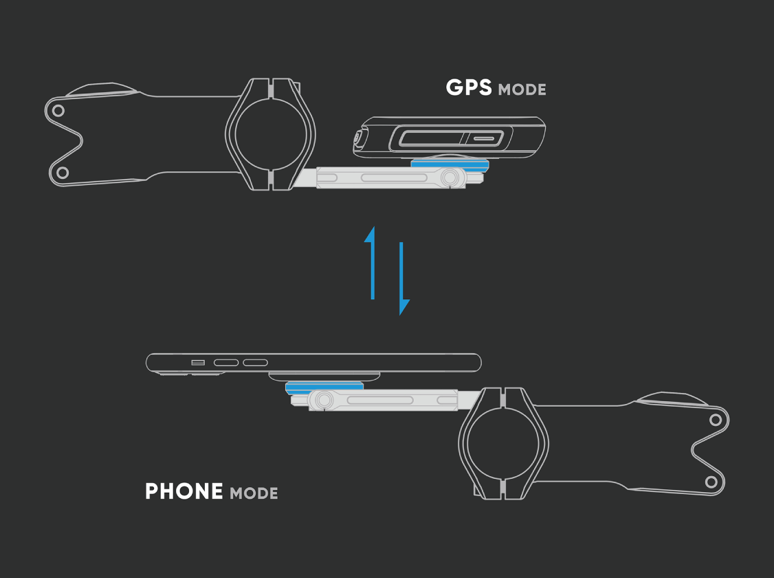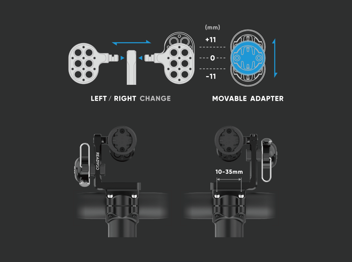 6パターンのサイクルコンピューター取り付け位置と自由な角度調整が可能で、一部のスマートフォンにも対応。コンピューターマウント裏面にはGoProマウントを標準装備。
