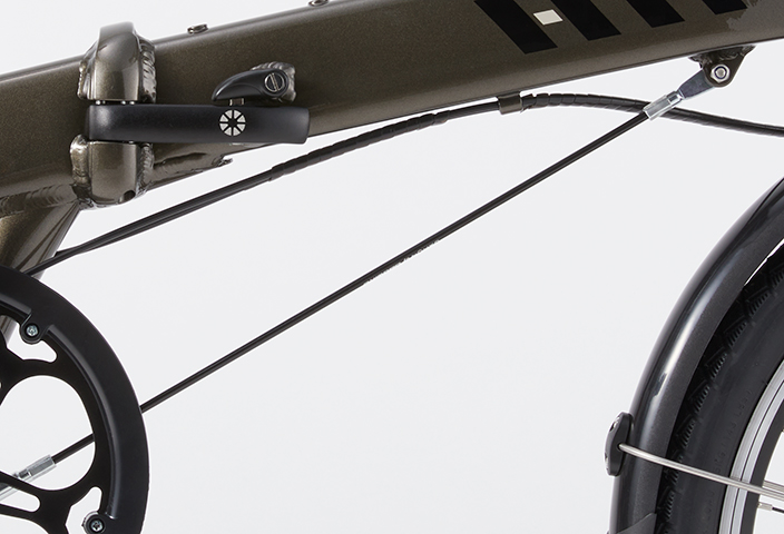 トップチューブとBBをケーブルでつなぐことによりフレームにトライアングルを形成。ヒンジ部分を中心にフレームへの負荷を軽減させて強度と耐久性を高める効果がある。