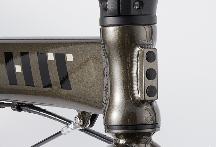 ヘッドチューブにはバスケット、ラック取付用の台座装備。その他フェンダーやリアラックなど多くのアクセサリ取り付けが可能となっており、ライフスタイルバイクとして拡張性が高くなっている。