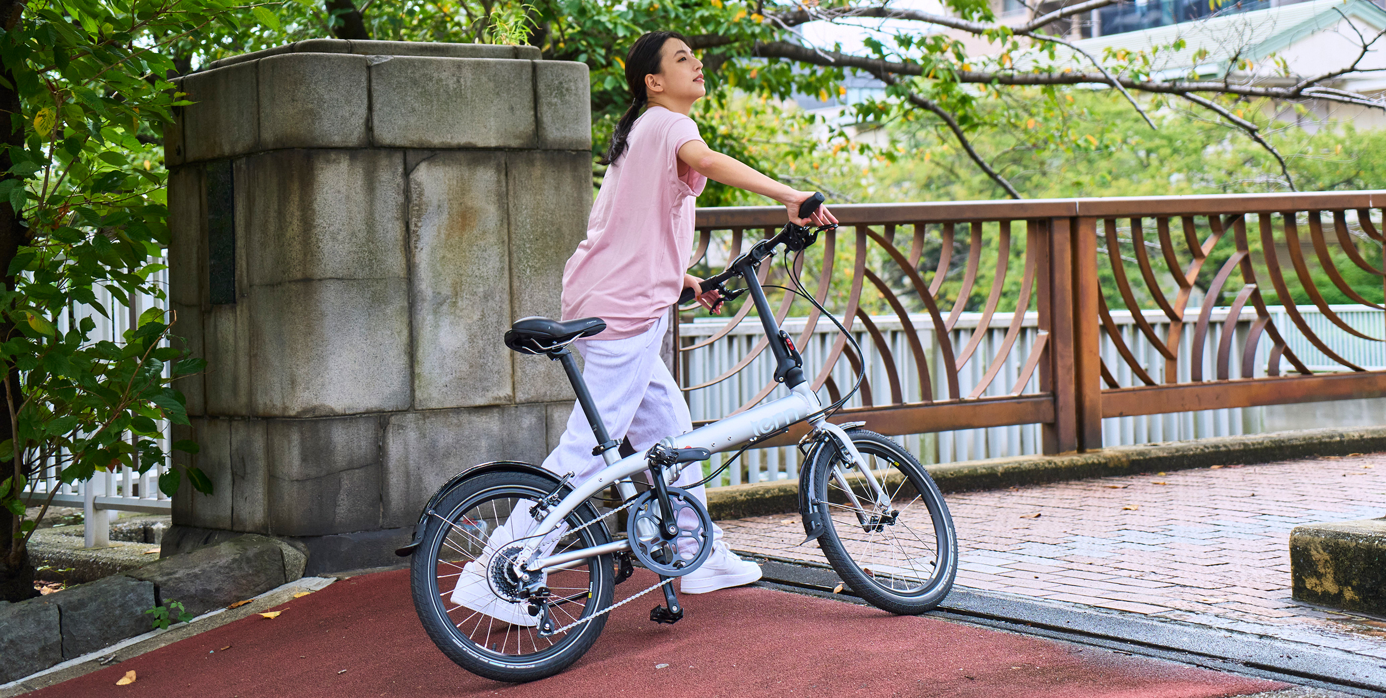 Link D8はハンドルの高さやポジションをワンタッチで理想の高さに調整でき、406規格のホイールと少し太めのタイヤにより安定性と走行性を両立。街乗りには最適な8段変速を搭載しており、小さく折りたため、セキュリティーが高い保管と快適な乗り心地を提供する。Linkで肩肘はらず必要な場所に移動するというシンプルな目的を叶えよう。