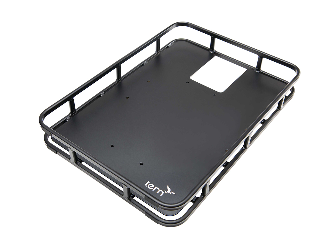 カーゴバイクに最適な頑丈なトレーは、市販のコンテナBOXと一緒に使うことで多くの荷物を運ぶことができます。