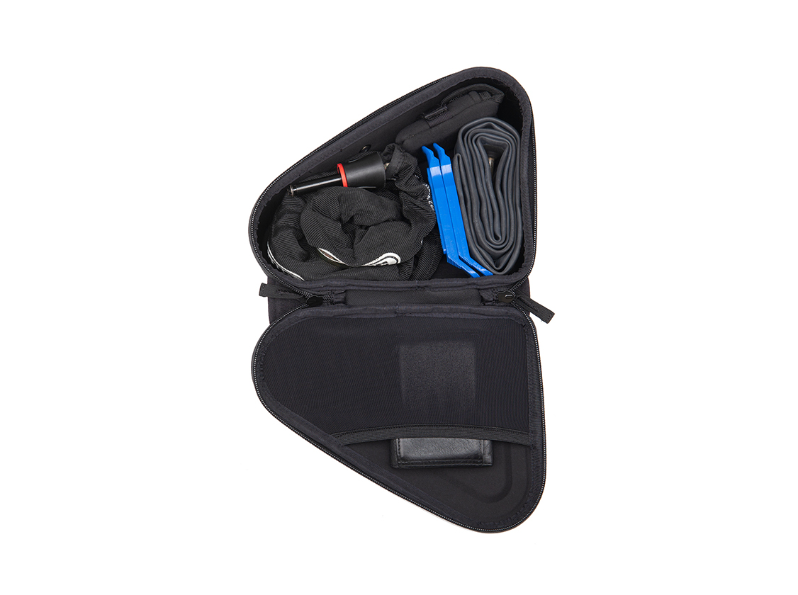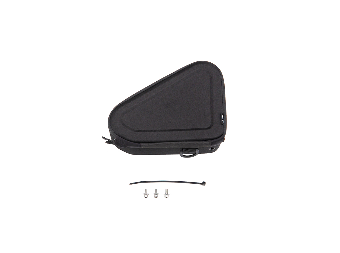 Tern「HSD P9」のフレームに溶け込む控えめなデザインで、自転車の必需品を収納可能。チェーンロック、インナーチューブ、ハンドポンプなどを収納できるスペースがあり、最大2kg (4 lb) まで収納できます。フレームボルトで固定されているため、走行中の揺れや盗難の心配がありません。