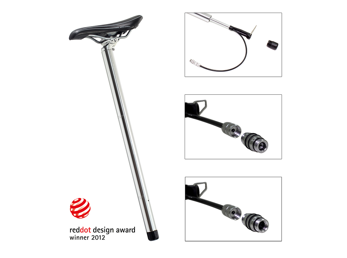 いざというときに助かり、場所も取らない。デザインアワードも受賞している空気入れが内蔵型シートポスト。