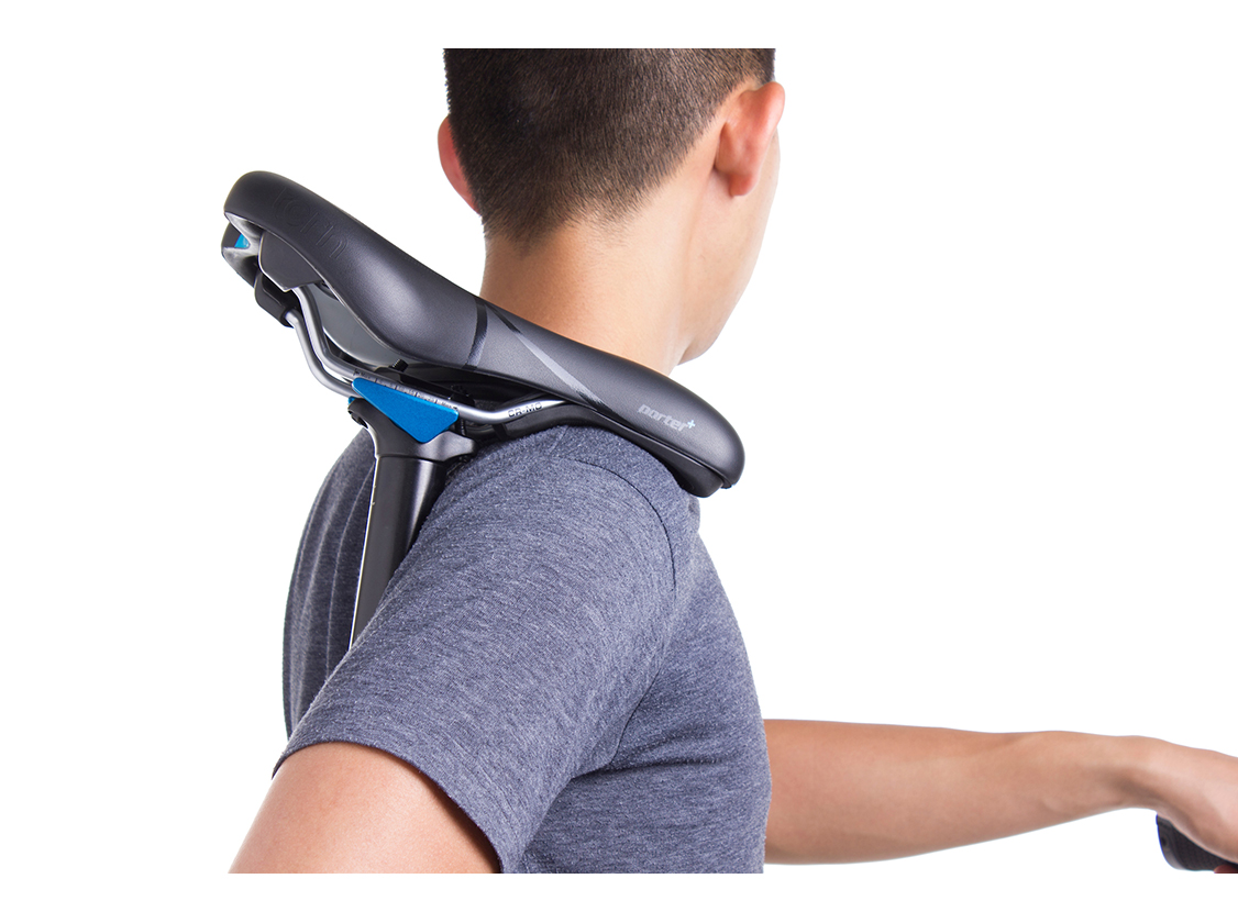 サドルの先端部分にパットが搭載され、肩に担いで簡単に持ち運ぶことが可能。