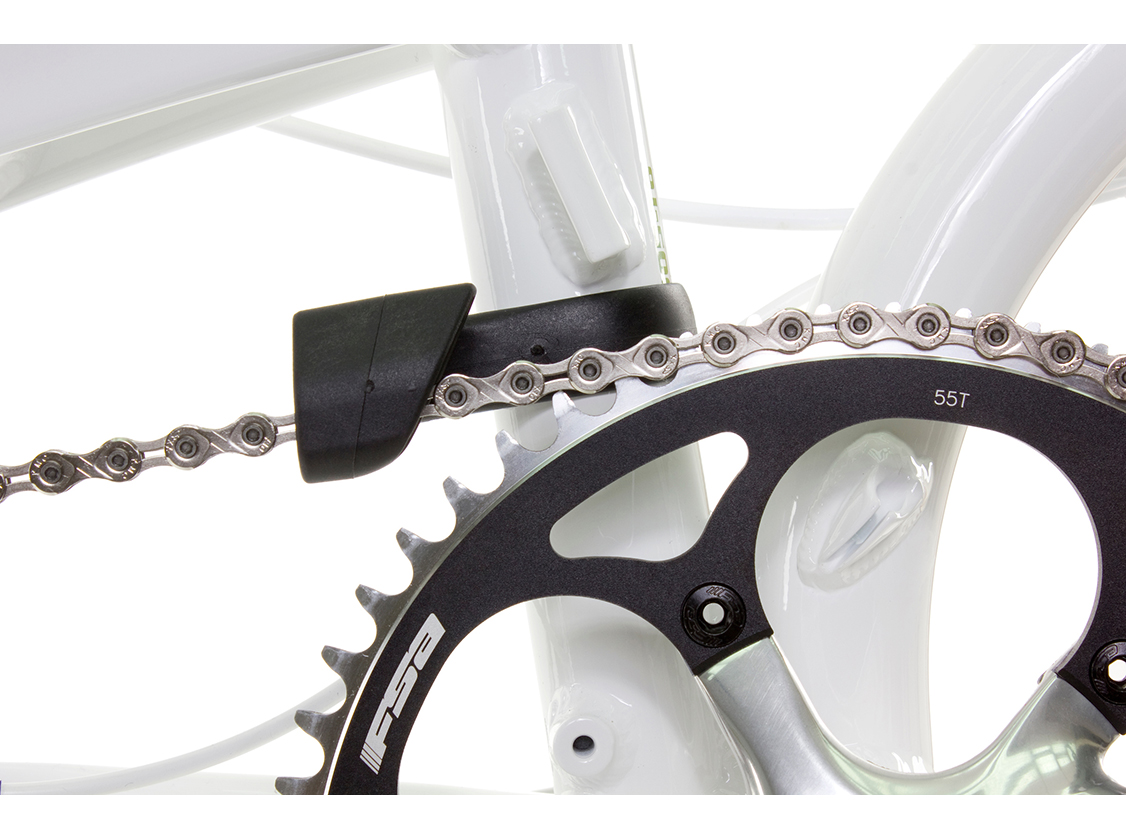 チェーン脱落防止パーツを搭載。チェーンを包み込み内外ともに脱落をガードします。