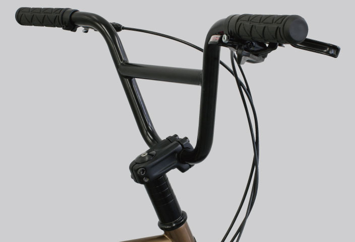 標準ではBMXバーが搭載されており、見た目だけでなく個性的な乗車ポジションも作り出します。カ スタムでハンドルを変更し好みのスタイルに変更するなど、自分好みに色付けできます。
