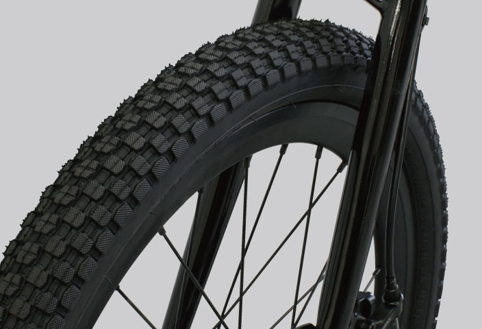 1.95の太いブロックタイヤを装着。見た目の無骨な男らしさだけでなく、クッション性の高い乗り味も魅力です。
