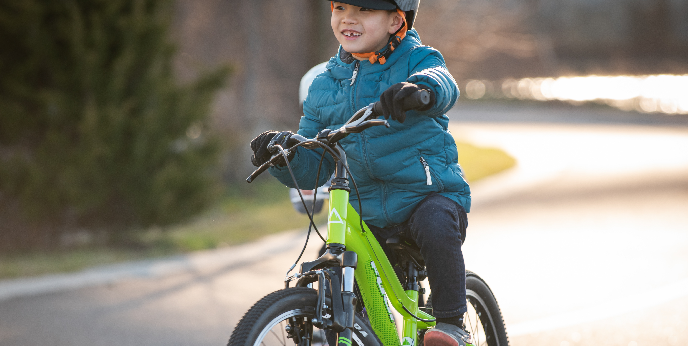キッズ用マウンテンバイクDYNAMITE。頑丈なアルミフレームにサスペンションフォーク搭載で本格的なトレイル走行を楽しめる。ファーストバイクにもおすすめで身長110cm台から乗車可能。