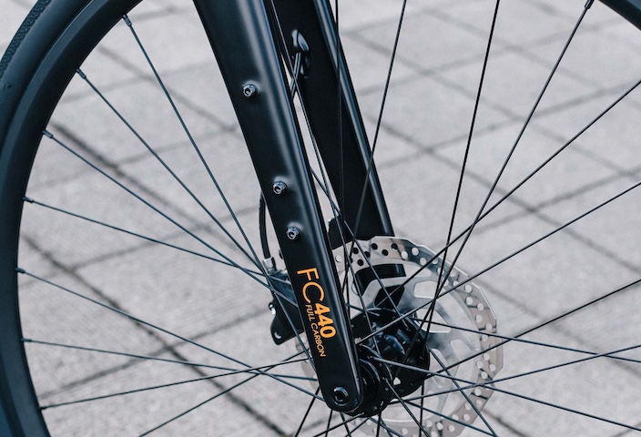 ブレーキケーブル内蔵式のフルカーボンフォーク採用。ブレード側面にボトルケージやラック/フェンダーなどをマウントできるUtility mountを装備