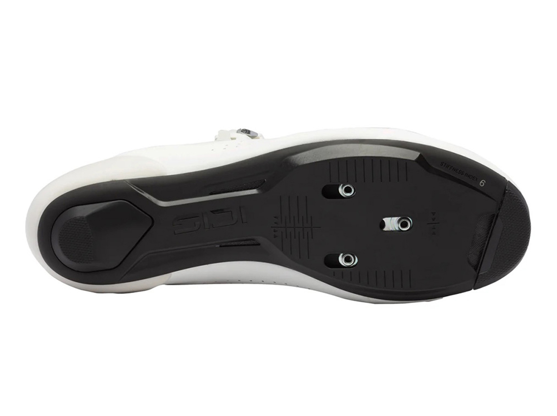 カーボンと複合素材を組み合わせたソールで、軽量かつ耐久性に優れ、パワー伝達と快適性のバランスが高く、長時間のライドでも疲れにくく、しっかりとした踏み心地 SIDI ソール剛性指数6(6/12)