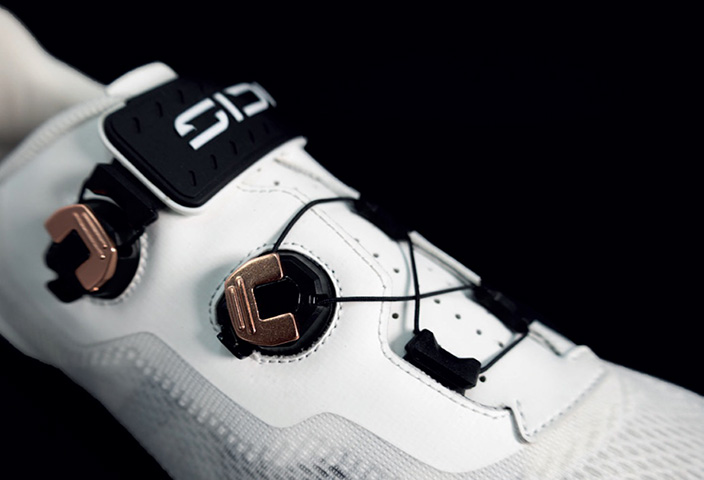 カーボンと複合素材を組み合わせたソールで、軽量かつ耐久性に優れ、パワー伝達と快適性のバランスが高く、長時間のライドでも疲れにくく、しっかりとした踏み心地 SIDI ソール剛性指数6(6/12)