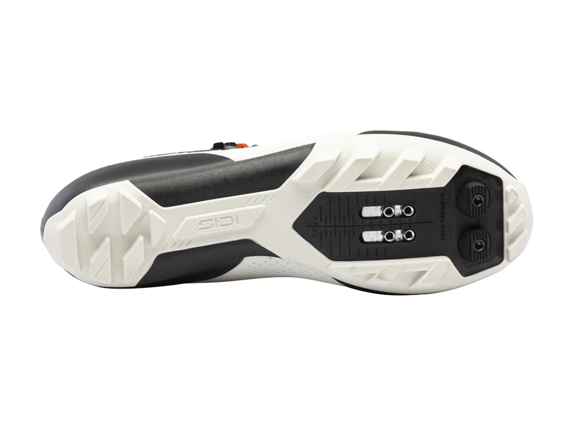 重要な接地ポイントで優れたトラクションを発揮。軽量で高剛性な構造が、優れたパワー伝達と安定性を両立し、あらゆる地形で確かな踏み込みをサポートします。 SIDI ソール剛性指数7(7/12)