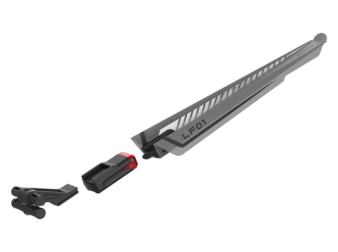 半透明のポリプロピレンを採用しており、付属のLUMIS Rear Lightと組み合わせることで、フェンダーから光が漏れ、リアライトの役割を果たす。通常のリアライトよりも視認性が良くなることで、安全性が飛躍的に向上する。