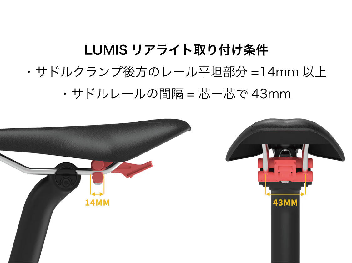 サドルレールに取り付ける際に十分な取り付けスペースがあるか、サドルレールの間隔が適合しているかを確認してください。