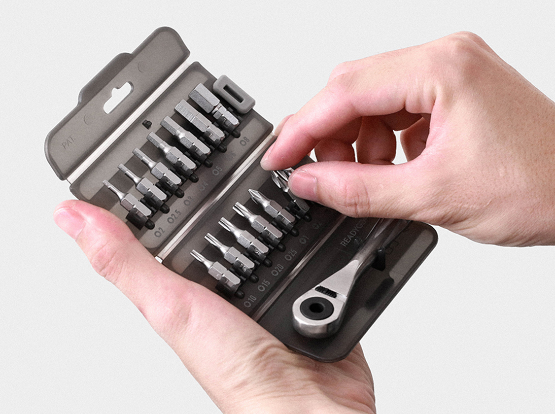14種類ものドライバービットが手のひらサイズに。自宅でのメンテナンスはもちろん、ライド時の持ち運びにも。