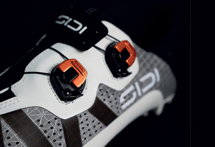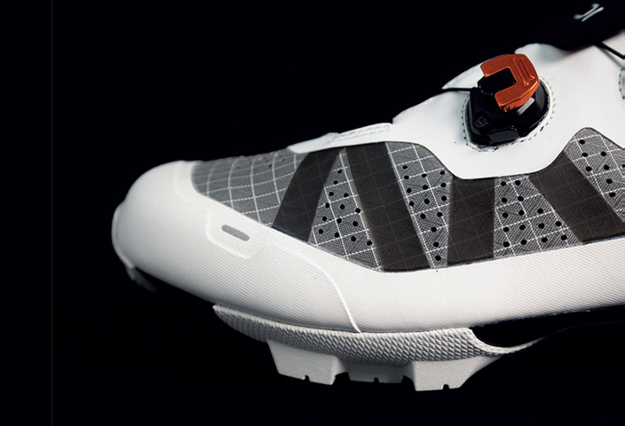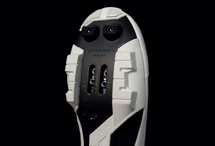 圧倒的なパワー伝達を実現。つま先には一体型ラグ(スパイク)を搭載し、着地時の衝撃を吸収するラバーを追加。軽量かつ高剛性、そして衝撃にも強い構造で、あらゆる地形に対応。 SIDI ソール剛性指数11(11/12)