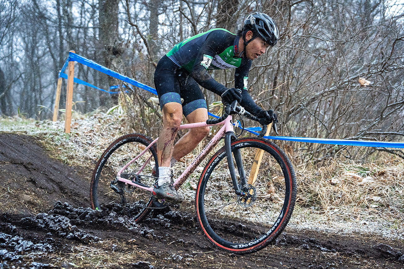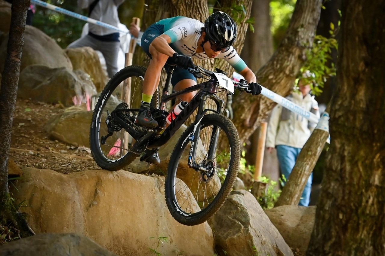 新しいMTB用の高硬度ソール「MTB SRS CARBON GROUND SOLE 」を採用。アッパーには穀物などからリサイクルされるマイクロファイバーを原料としたBioveg素材を用いています。ダイヤル式のクロージャーシステムは、選手同士の接触や転倒時にダメージを受けにくいようシューズの中央に配置。踵部分には両側のネジによる微調整が可能で、足の形状に合わせてしっかりとしたホールドを得られる「ADJUSTABLE HEEL RETENTION DEVICE」を採用しています。交換可能なラバーインサートを備えたアウトソールは歩行時にしっかりとグリップ、つま先部分にはゴム加工が施され、MTB用専用設計ならではの特徴も。