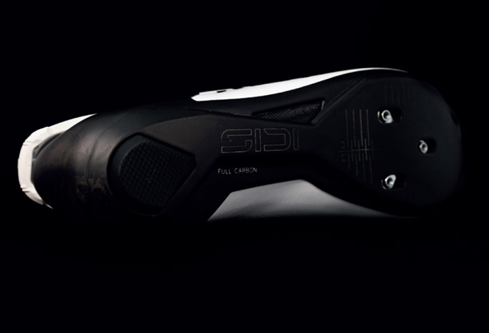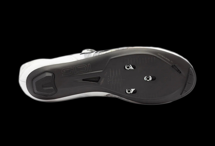 軽量かつ高剛性のフルカーボン素材を使用。ペダルへの力を一切逃さず、ダイレクトに伝達。 SIDI ソール剛性指数11(11/12)