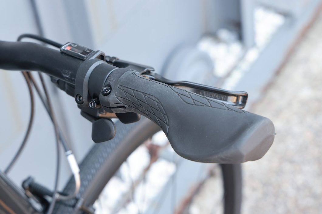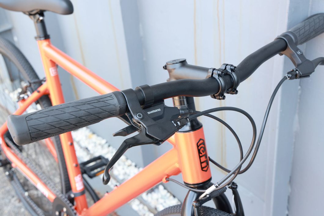 少しライザーされたハンドルバーと長めのコラムによりアップライトなポジション選択が可能。操作性にも優れ、前傾がキツくなり過ぎずゆったりとした乗り心地に。