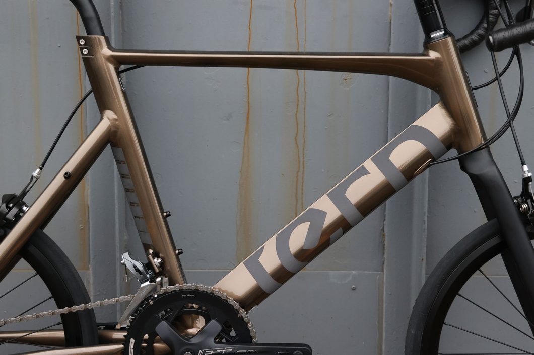 ホリゾンタル設計のトップチューブとエアロ形状のダウンチューブの美しさにより磨きがかかる様に作られた「Brass」。昼夜問わず煌めく存在感を発揮される特別なカラーをチョイス。
