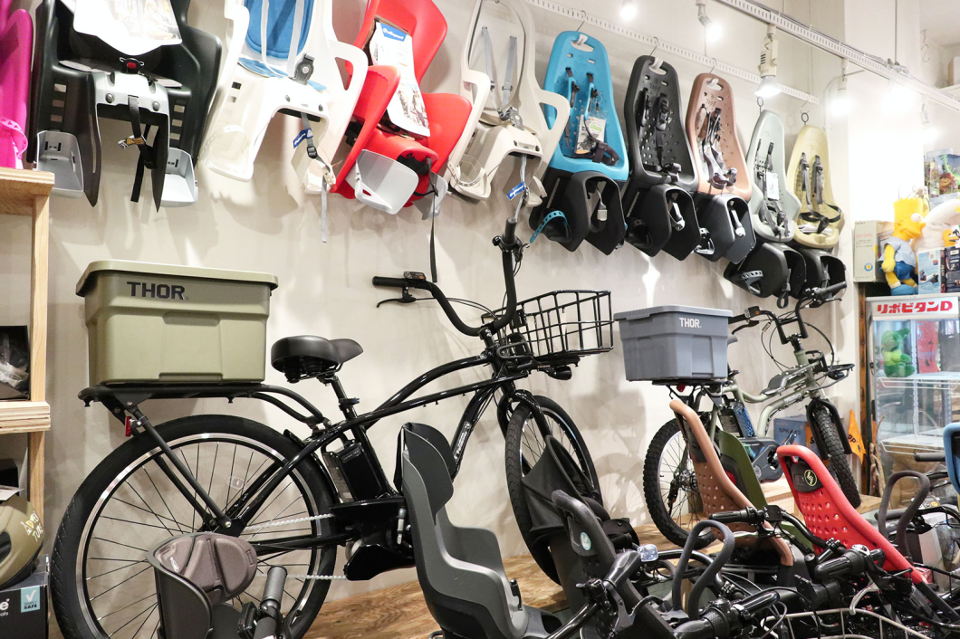 子ども乗せなど、ママ向けのモデルや子ども車も充実しています。我が子の自転車を買いにきたご家族の方が、自分の自転車も欲しくなってしまう…そんな「広がり」を展開するラインナップをご用意しております。