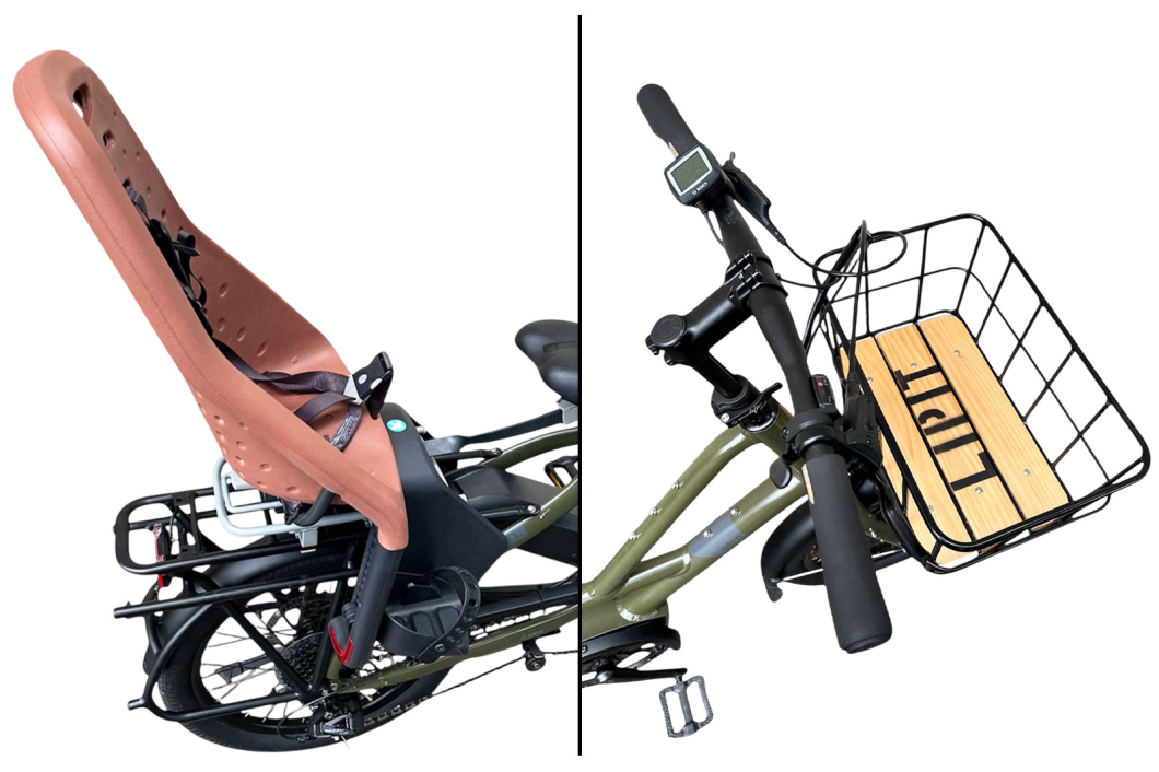 ※Quick Hual D8のリアラックは50kgまで耐えれる強固な仕様のため、あらゆる荷物を乗せることができます。Ternでは海外におけるHSDへのチャイルドシートの装着は安全基準を満たし、問題なく使用されていますが、日本の安全基準は海外と異なります。国内での装着・使用についてはチャイルドシートメーカーやTern正規販売代理店へ必ずご相談いただきます様お願い致します。