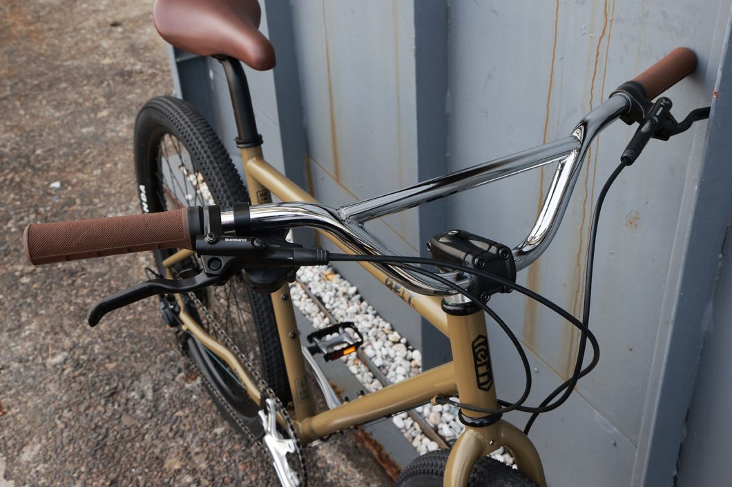 Low RiseのBMXバーを採用。通常のフラットバーよりも少し高めのハンドル位置となっており、横幅も広く前傾姿勢になり過ぎないゆったりとしたスタイルで安定感のある走行が可能です。