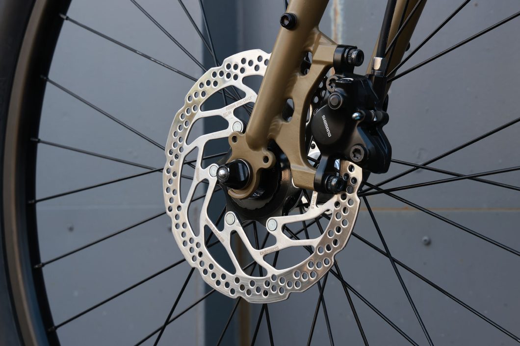 悪天候でも制動力を発揮するディスクブレーキを搭載。悪路だけでなく雨上がりの路面での走行時も威力を発揮します。