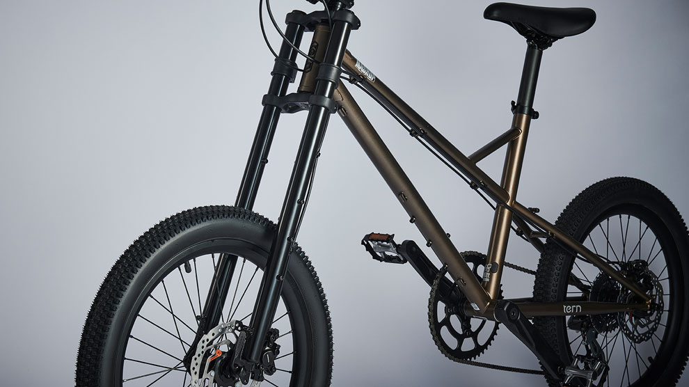 MTBスタイルのタフなクロモリフレームを採用。高いヘッド位置から一直線に下るMTB譲りのフレームワークがソリッドで剛健な新世代ミニベロフレーム。広い身長域をカバーする1サイズ設計。ドロッパーシートポストに対応し、随所にダボを配し拡張性も充実。