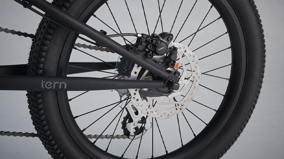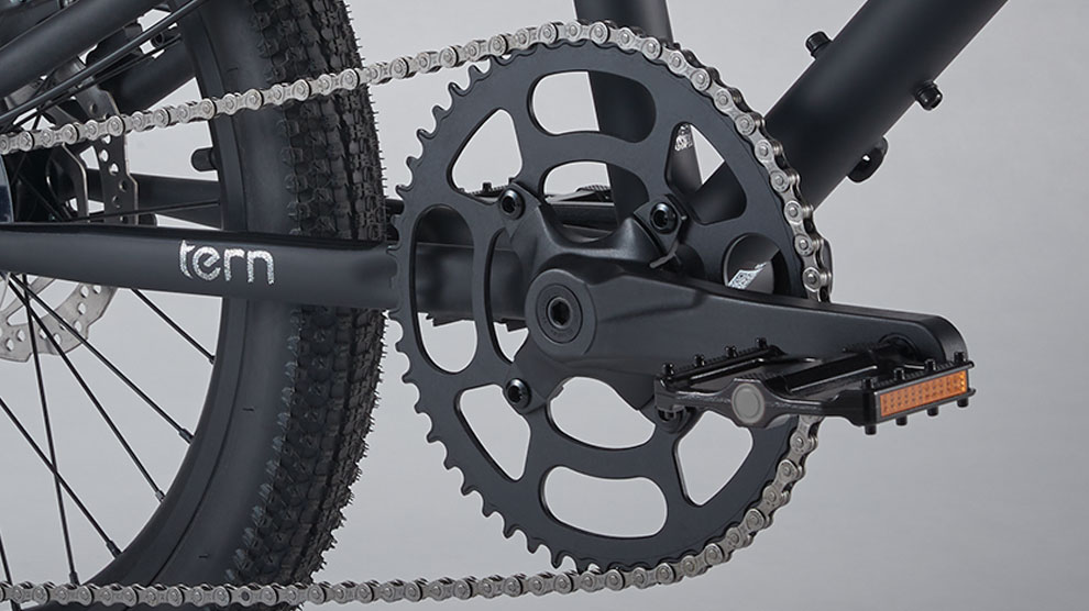 52Tナローワイド 4アームクランクセットを搭載。MTB規格の73mmBBとPCD104の4アーム式クランクに52Tの大径ナローワイドチェーンリングを組み合わせ、ミニベロらしからぬ踏み応えと高速巡航性能を生み出すパワフルな駆動系を採用。