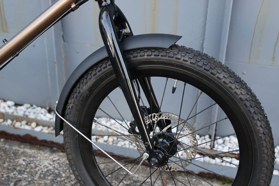 厚みのある専用フェンダーは、406極太ブロックタイヤの力強さはそのままに、AMPがもつストリート感を増幅。大人の遊び心・こだわりが詰まった次世代ストリートバイクへと進化。