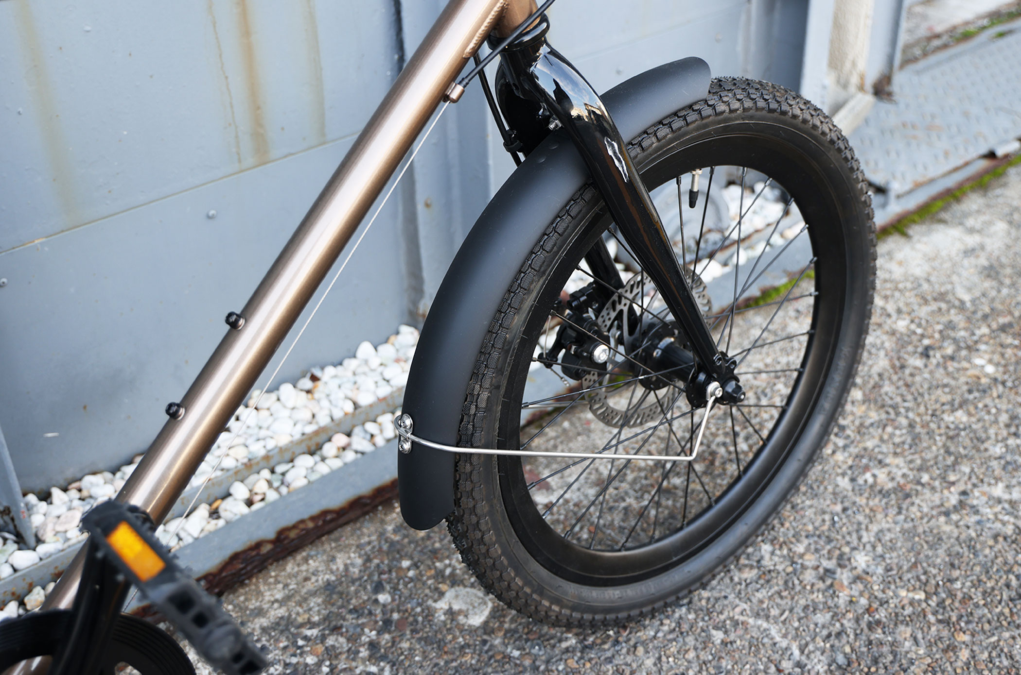フィット感・耐久性・取り付けやすさを徹底追求したシンプル&精悍なデザイン。マットブラックの質感が、ミニベロのコンパクトなフォルムをさらに引き締めます。