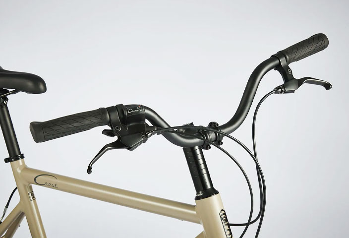 Shimano AltusからMicroshift製に変更され、シフティング操作が親指1本で直感的に行えるように。残りの指でしっかりとグリップを握ることで走行時の安全性もアップします。