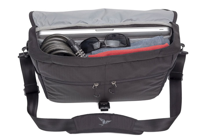 ノートパソコン、充電ケーブル、財布、レインコート、傘などたくさんの荷物を入れることができるメッセンジャーバッグです。