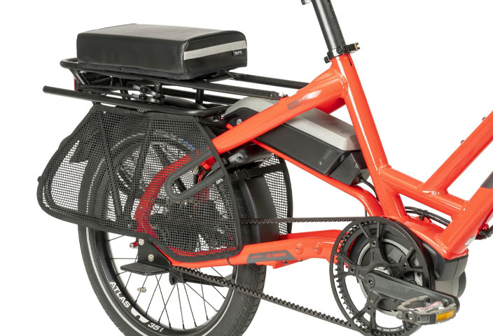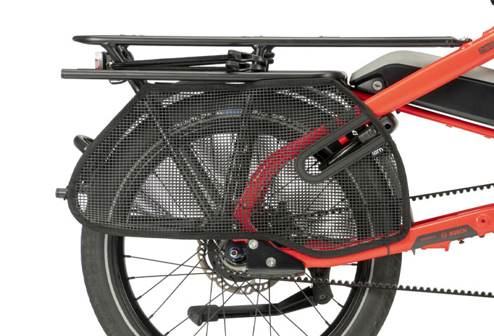 さまざまなパニアやバスケットとともに取り付け可能。天候に左右されず、お手入れが簡単なメッシュ素材と丈夫なベルクロストラップを使用。 ※対応モデル:HSD P9 ※Wheel Guardを取り付けてもHSD標準装備のフレームロックは問題なく施錠可能です。